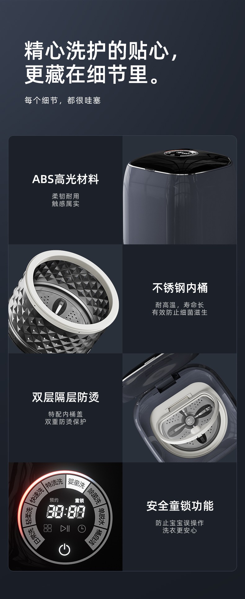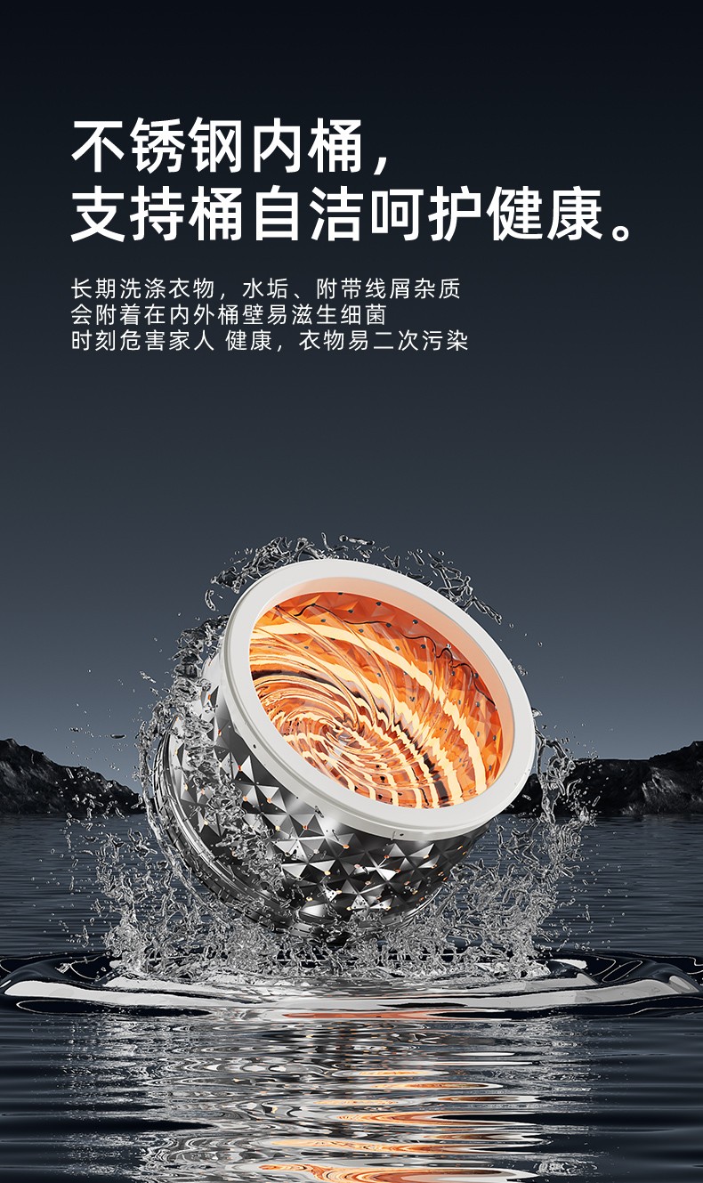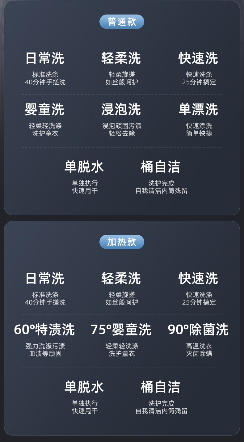程序:日常洗/轻柔洗/快速洗/浸泡洗/婴童洗/单漂洗/单脱水/桶自洁